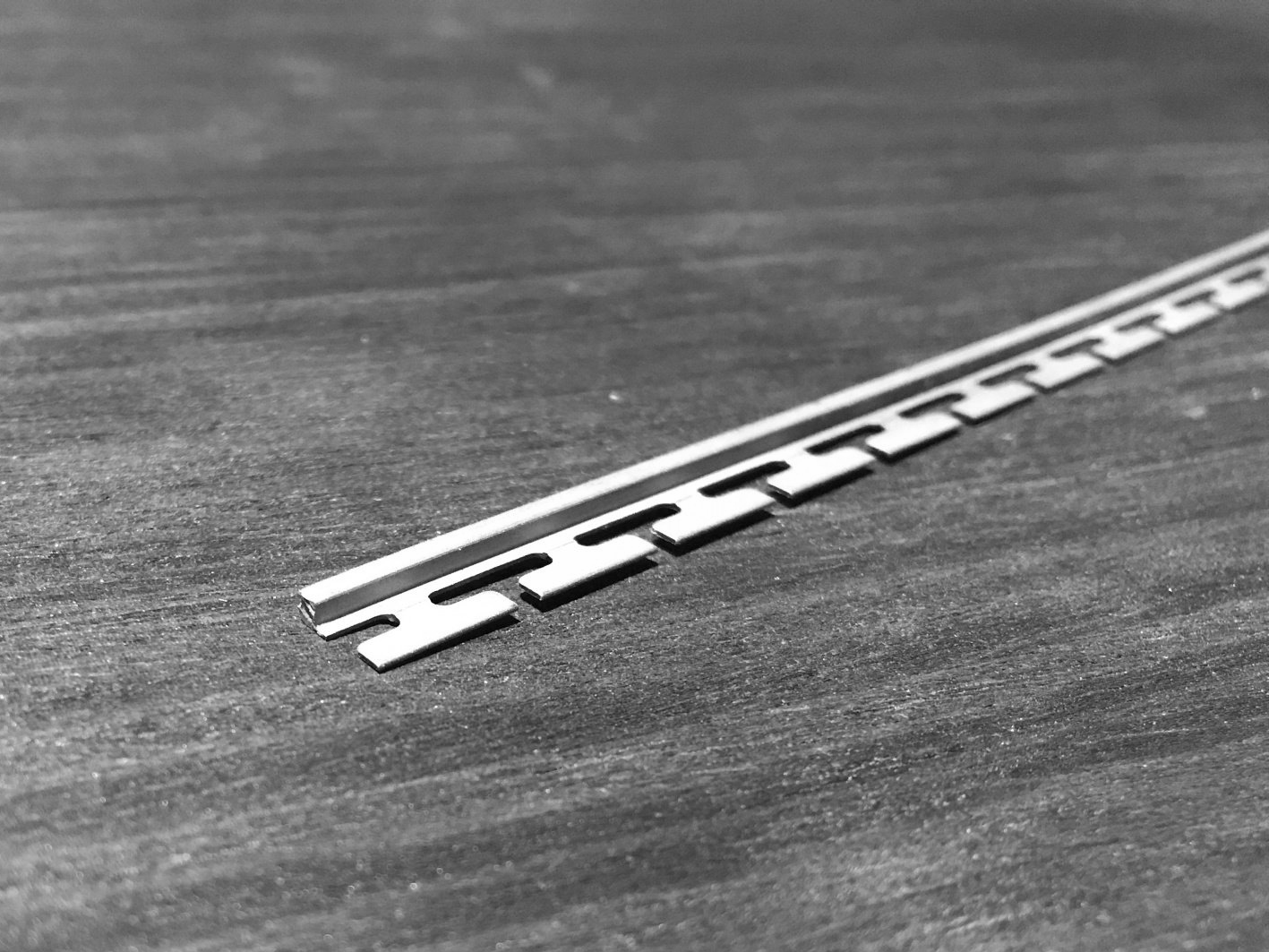 Once the base has been milled flush with the template, the spring steel edges are glued to the base by the market leader from Innsbruck. This step is done entirely by hand, and care must be taken to ensure that there is no gap between the edge and the rubber, so the edge must be perfectly pre-bent at the tips, as these have a special shape.